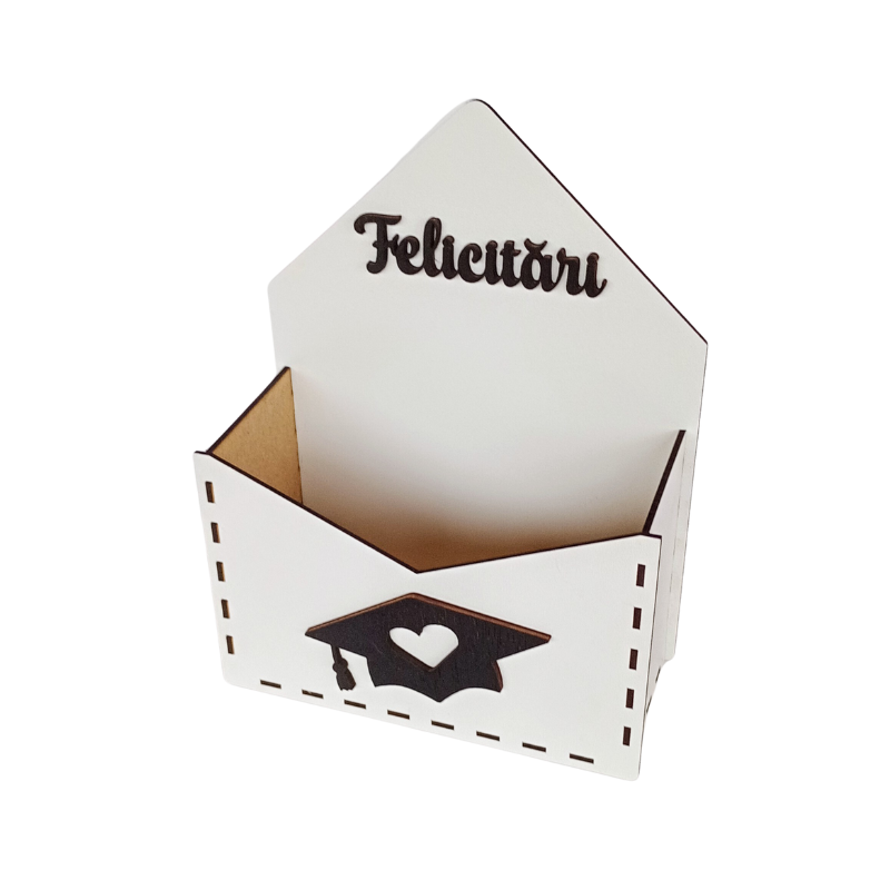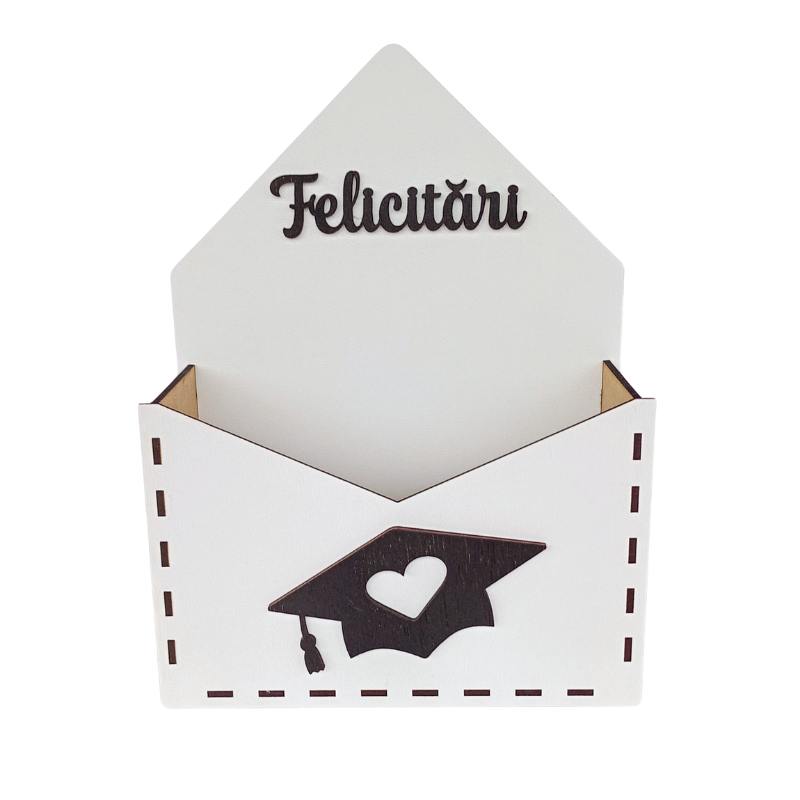 Cutie decorativa pentru aranjamente de absolvire. Cu un design elegant și simboluri academice precum toca, această cutie este alegerea perfectă pentru a pune în valoare florile, accesoriile festive sau mesajele de felicitare dedicate promoției 2025. Ideală ca dar de absolvire, această cutie adaugă un plus de rafinament oricărui decor festiv, transformând orice aranjament într-un cadou memorabil.